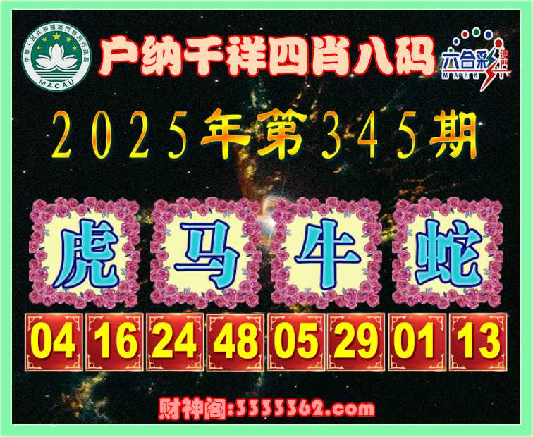 345期:《户纳千祥》 🏇四肖八码🏇【虎马牛蛇】开:00准