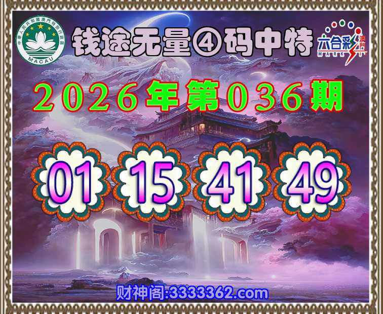 036期: 🧶『钱途无量』 🧶④码中特🧶【01.15.41.49】开:01