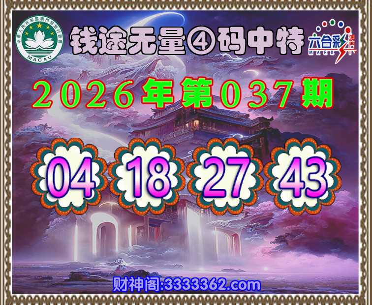 037期: 🧶『钱途无量』 🧶④码中特🧶【04.18.27.43】开:43