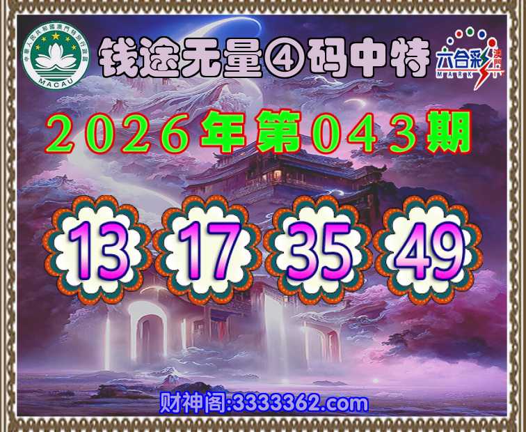 043期: 🧶『钱途无量』 🧶④码中特🧶【13.17.35.49】开:13