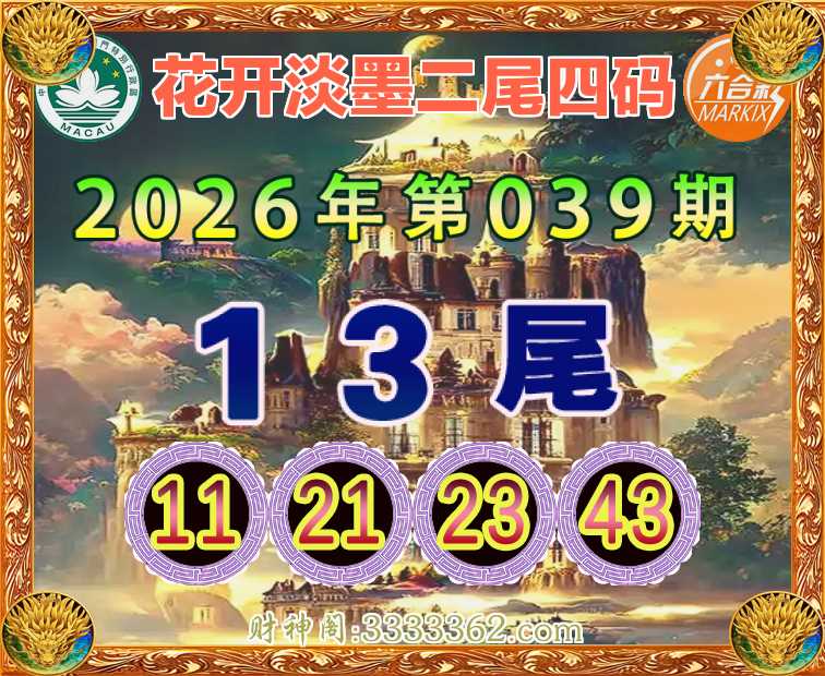 039期:《花开淡墨》 🥖二尾四码🥖【13尾主:11.21.23.43】开:11