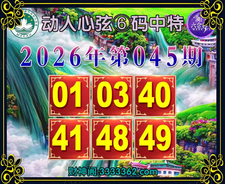 045期: 🥰『动人心弦』 🥰⑥码中特🥰【01.03.40.41.48.49】开:01
