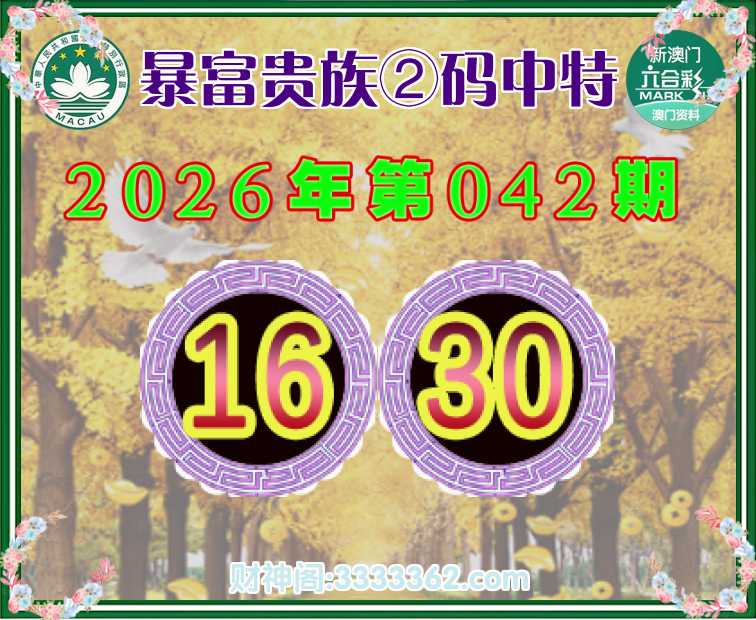 042期:『暴富贵族』 🏇②码中特🏇【16.30】开:16