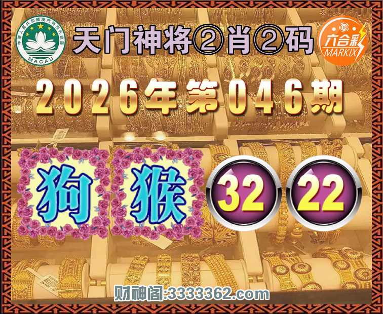 046期:【天门神将】 🥧②肖②码🥧【狗猴】【32.22】开:00准