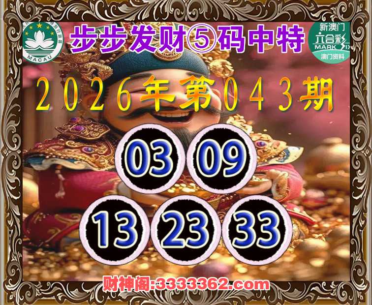 043期:『步步发财』 🏅⑤码中特🏅【03.09.13.23.33】开:13
