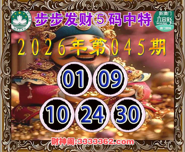 045期:『步步发财』 🏅⑤码中特🏅【01.09.10.24.30】开:01