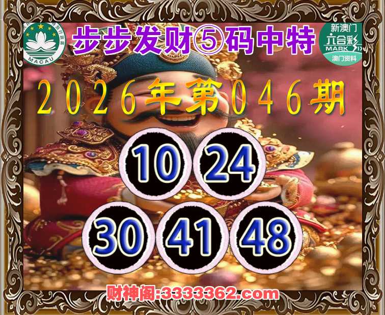 046期:『步步发财』 🏅⑤码中特🏅【10.24.30.41.48】开:00准