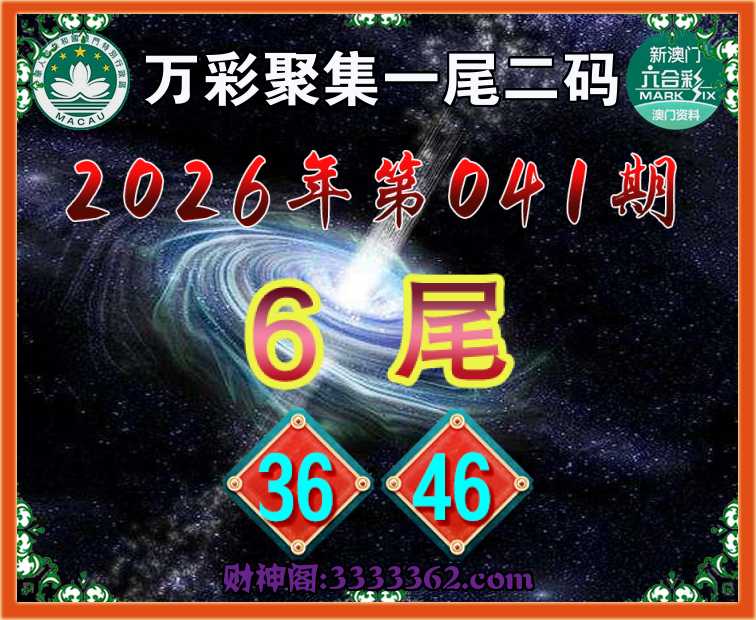 041期: 👛『万彩聚集』 👛一尾二码👛【6尾主:36.46】开:36