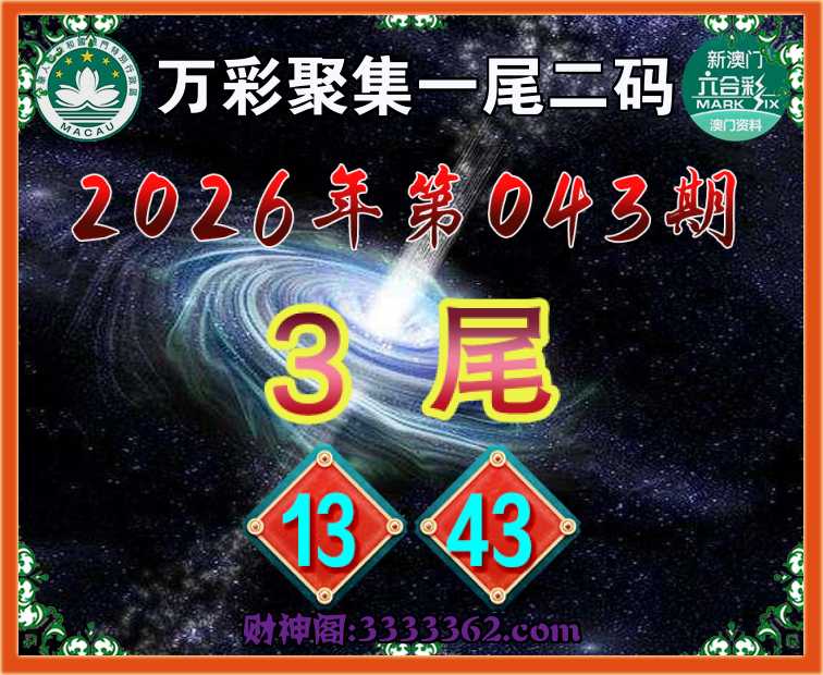 043期: 👛『万彩聚集』 👛一尾二码👛【3尾主:13.43】开:13