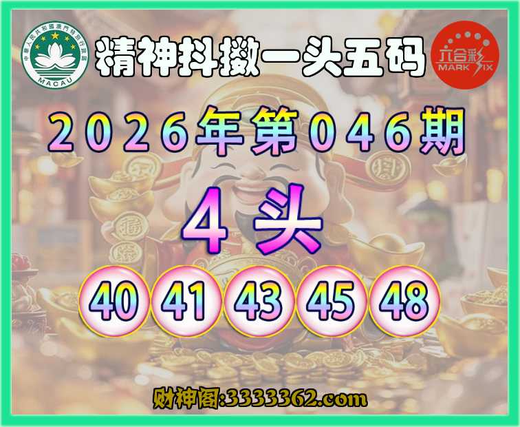 046期:『精神抖擞』 🎪一头五码🎪【4头主:40.41.43.45.48】开:00准