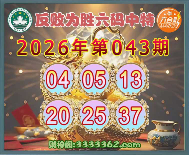 043期:《反败为胜》 👘六码中特👘【04.05.13.20.25.37】开:13