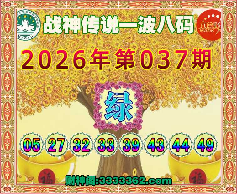 037期: 📸『战神传说』 📸一波八码📸【绿波】开:猪43