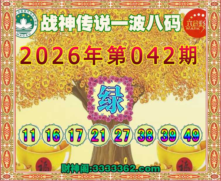 042期: 📸『战神传说』 📸一波八码📸【绿波】开:虎16