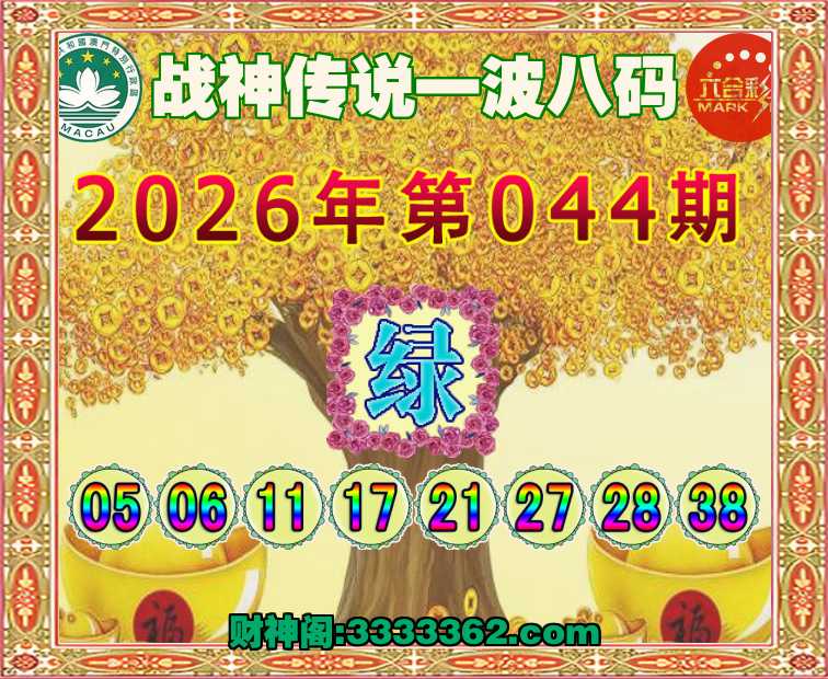 044期: 📸『战神传说』 📸一波八码📸【绿波】开:00准