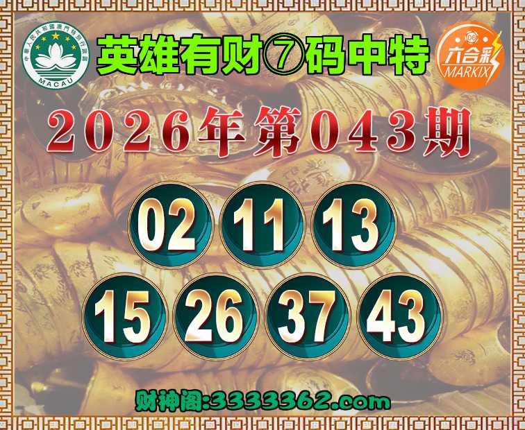 043期:【英雄有财】 🌲⑦码中特🌲【02.11.13.15.26.37.43】开:13