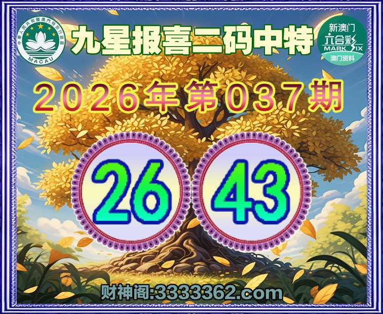 037期:『九星报喜』 🤘二码中特🤘【26.43】开:43