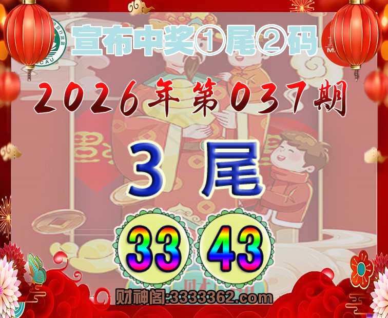 037期:『宣布中奖』 🚲①尾②码🚲【3尾主:33.43】开:43