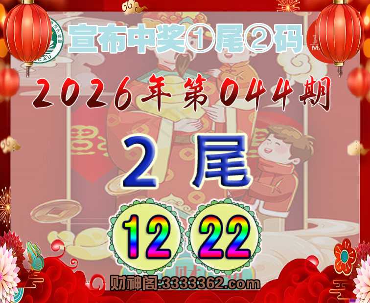 044期:『宣布中奖』 🚲①尾②码🚲【2尾主:12.22】开:00准