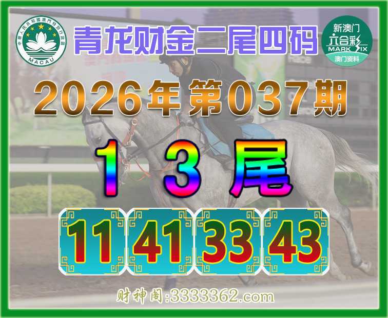 037期: 🥩《青龙财金》 🥩二尾四码🥩【13尾主:11.41.33.43】开:43