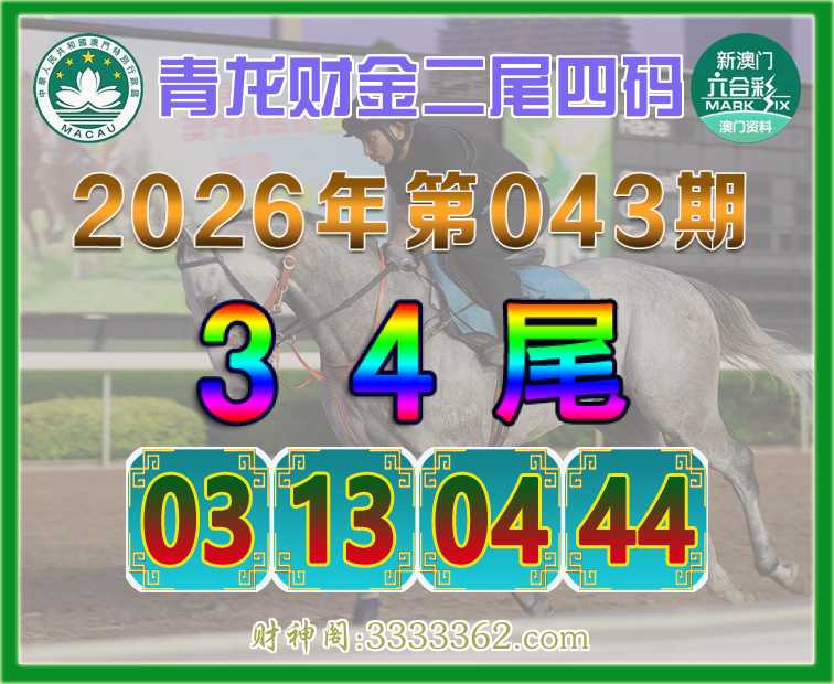 043期: 🥩《青龙财金》 🥩二尾四码🥩【34尾主:03.13.04.44】开:13