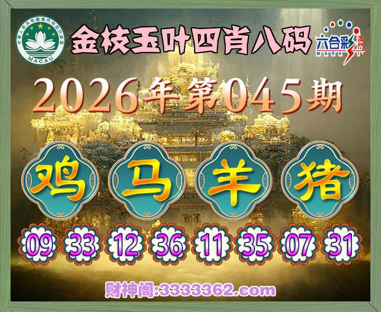 045期:【金枝玉叶】 🏇四肖八码🏇【鸡马羊猪】开:00准
