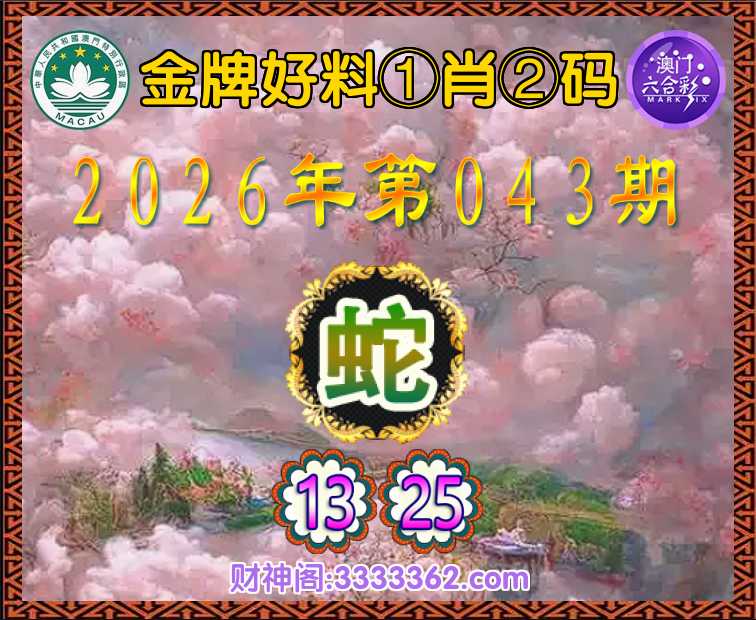 043期:【金牌好料】 ☺️①肖②码☺️【】【13.25】开:蛇13