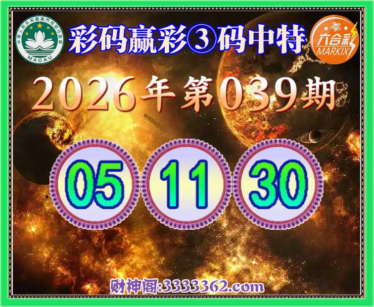 039期:《彩码赢彩》 🎖️③码中特🎖️【05.11.30】开:11