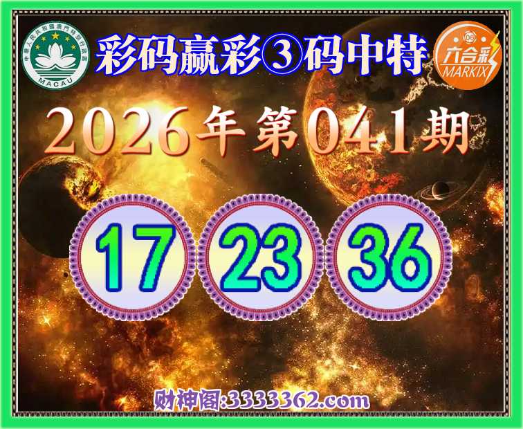 041期:《彩码赢彩》 🎖️③码中特🎖️【17.23.36】开:36