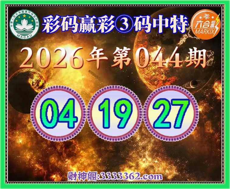 044期:《彩码赢彩》 🎖️③码中特🎖️【04.19.27】开:19