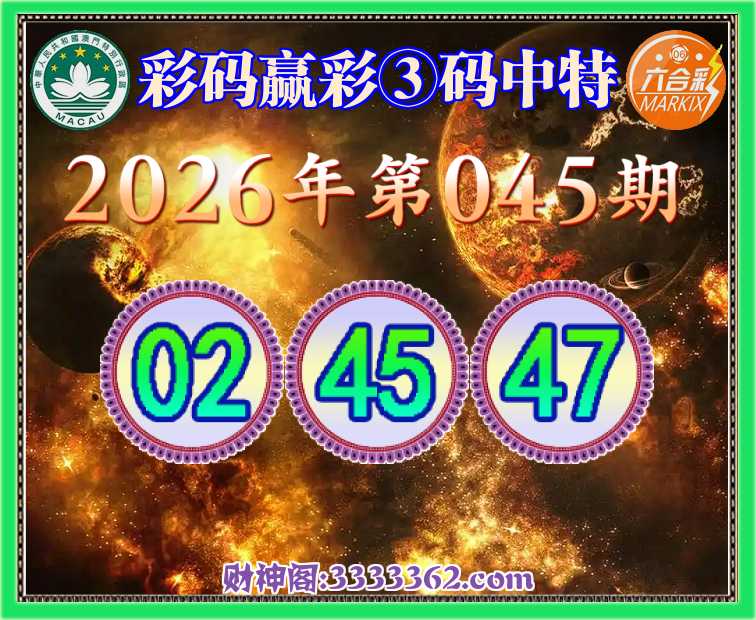 045期:《彩码赢彩》 🎖️③码中特🎖️【02.45.47】开:00准