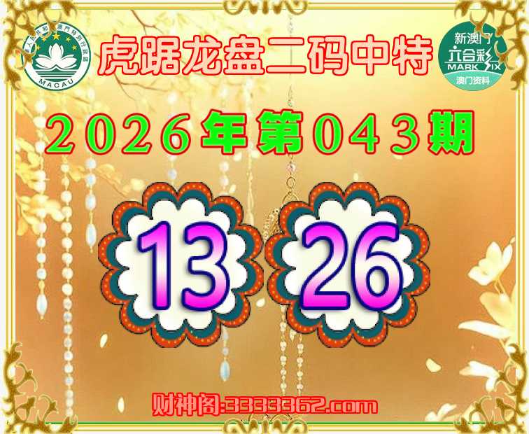 043期:【虎踞龙盘】 👘二码中特👘【13.26】开:13