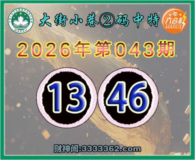 043期:〖大街小巷〗 🥩②码中特🥩【13.46】开:13