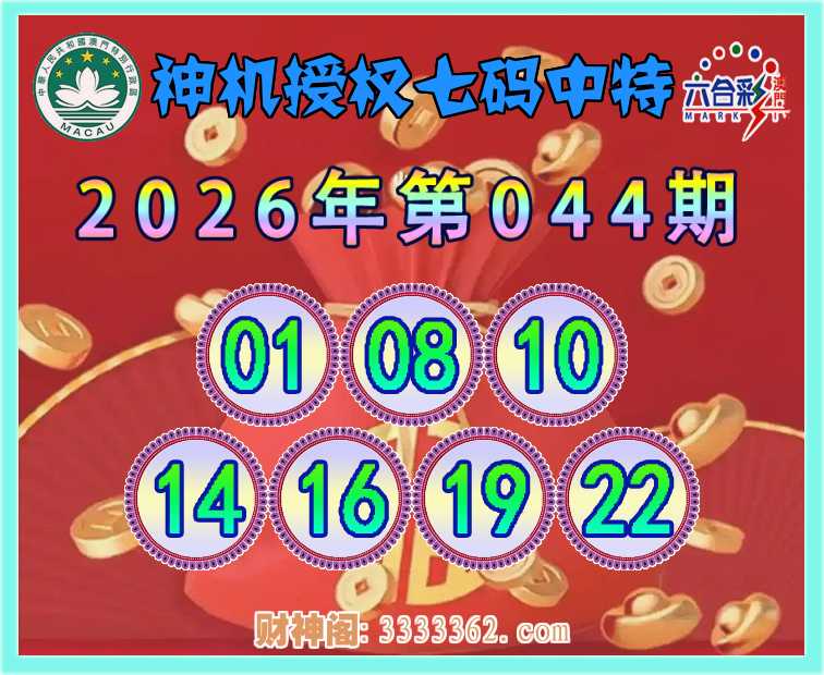 044期: 💎『神机授权』 💎七码中特💎【01.08.10.14.16.19.22】开:19