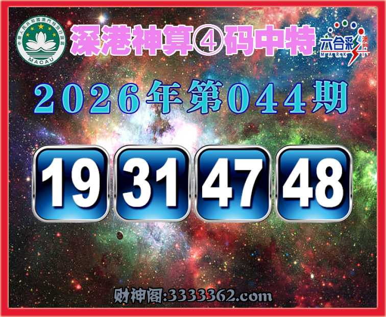 044期: 深港神算 🍕④码中特🍕【19.31.47.48】开:19