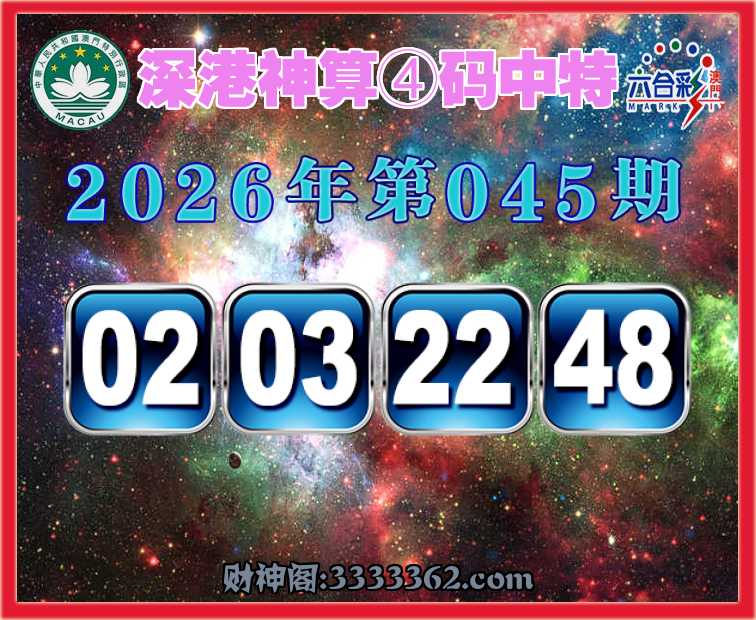 045期: 深港神算 🍕④码中特🍕【02.03.22.48】开:00准
