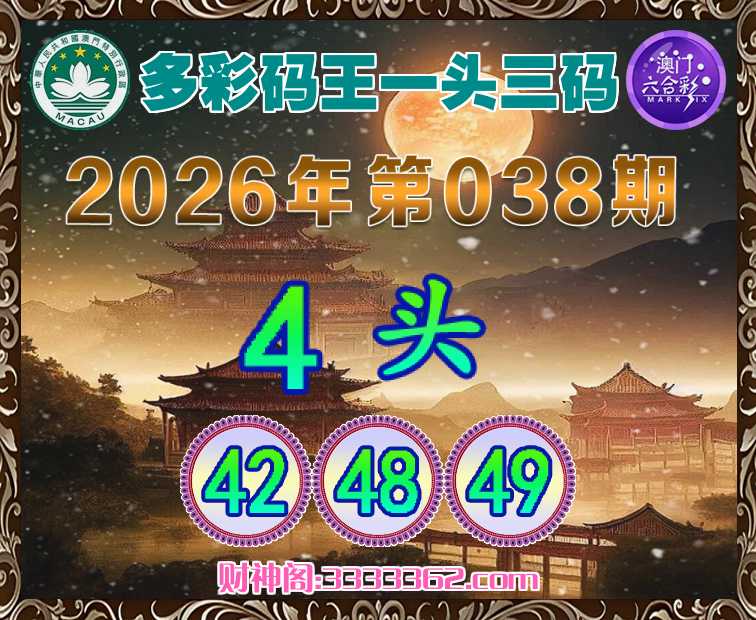 038期:『多彩码王』 👉一头三码👉【4头主:42.48.49】开:鼠42