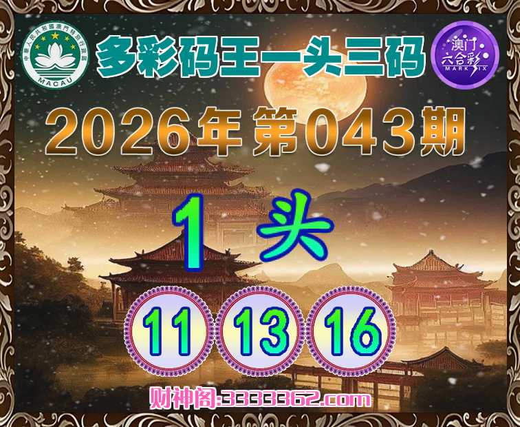 043期:『多彩码王』 👉一头三码👉【1头主:11.13.16】开:蛇13
