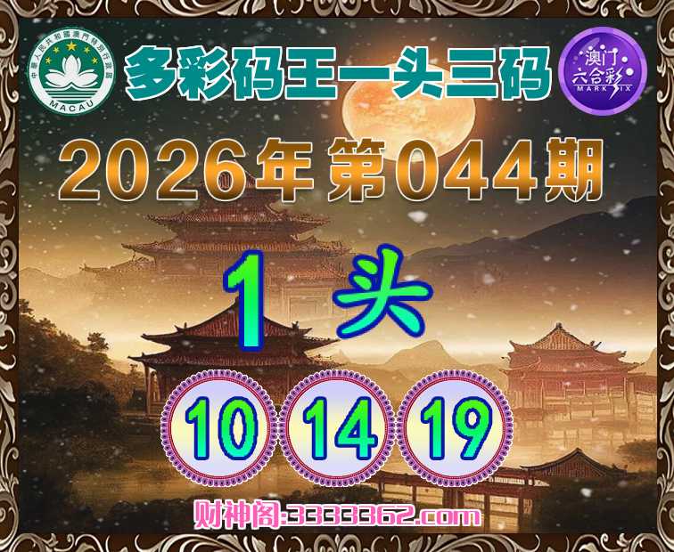044期:『多彩码王』 👉一头三码👉【1头主:10.14.19】开:猪19