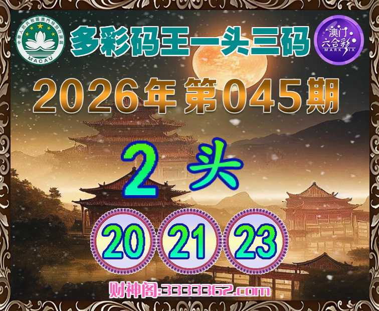 045期:『多彩码王』 👉一头三码👉【2头主:20.21.23】开:00准