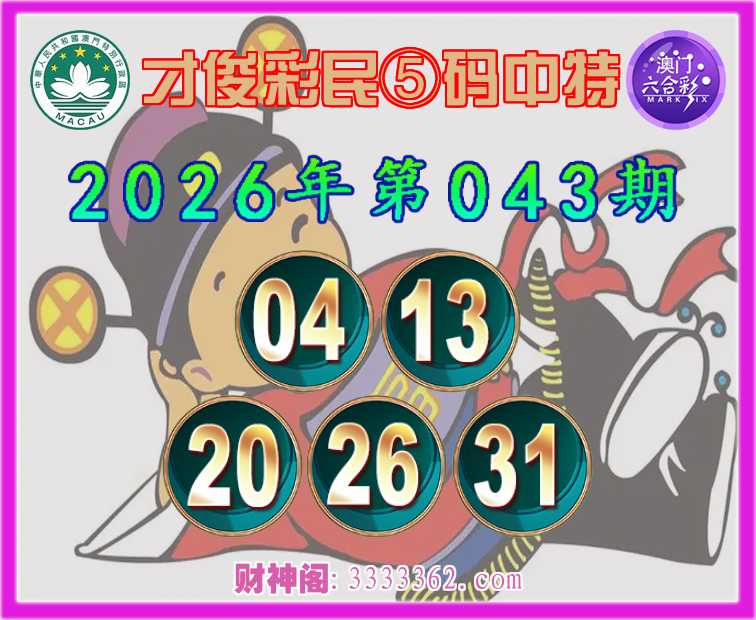 043期:《才俊彩民》 🎀⑤码中特🎀【04.13.20.26.31】开:13