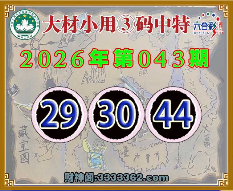 043期:《大材小用》 ♦️③码中特♦️【29.30.44】开:00准