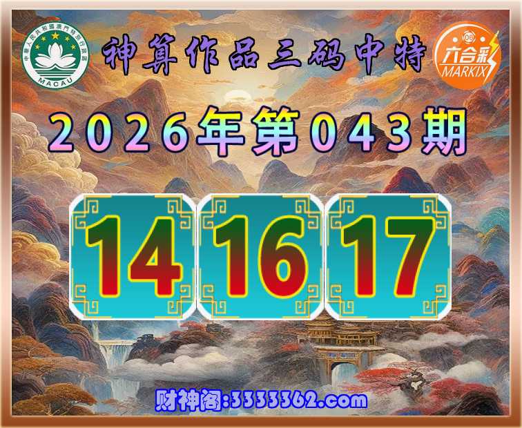 043期:【神算作品】 🍒三码中特🍒【14.16.17】开:00准