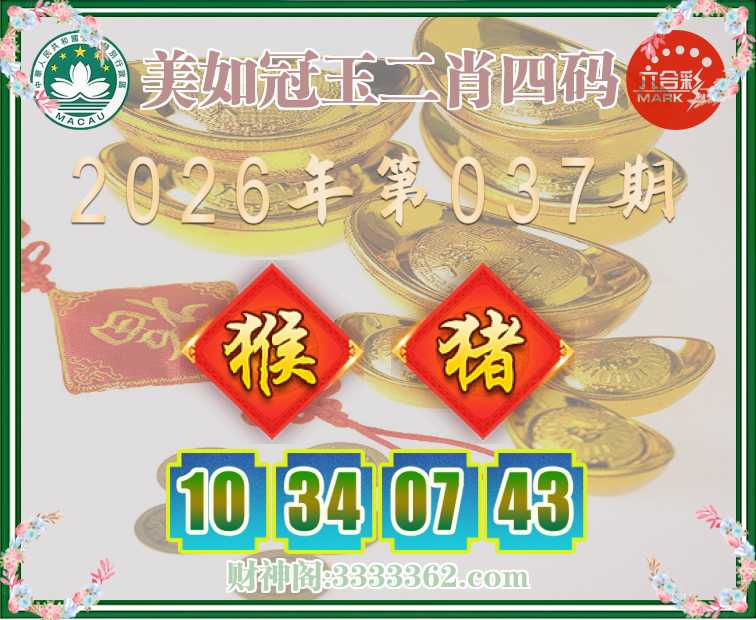 037期:〖美如冠玉〗 ♣️二肖四码♣️【猴】【10.34.07.43】开:猪43