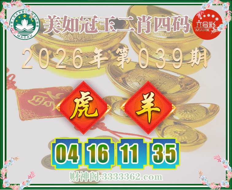 039期:〖美如冠玉〗 ♣️二肖四码♣️【虎】【04.16.11.35】开:羊11
