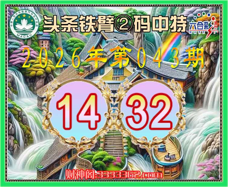 043期: 头条铁臂 🥽②码中特🥽【14.32】开:00准
