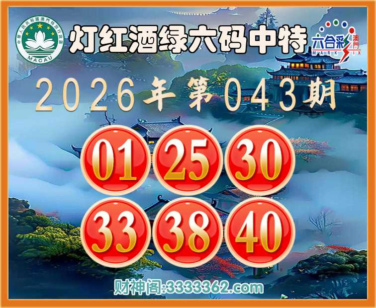 043期:『灯红酒绿』 🥖六码中特🥖【01.25.30.33.38.40】开:00准