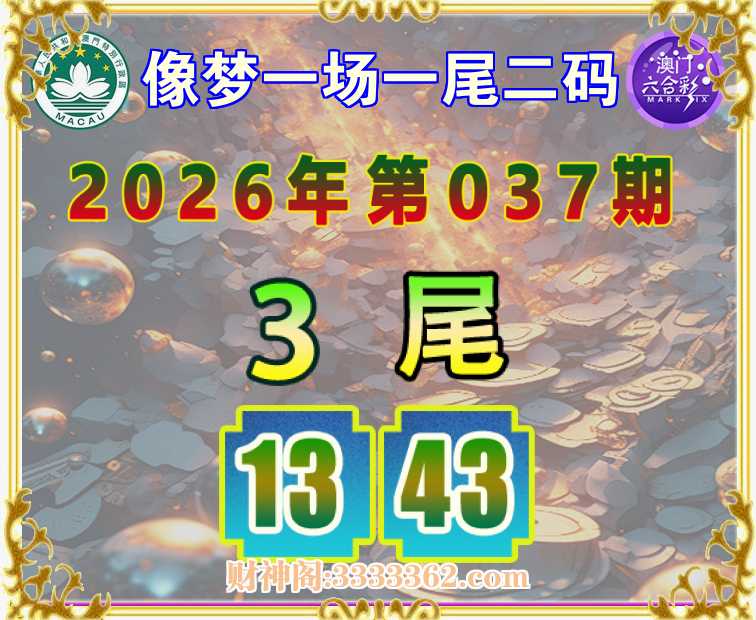 037期:【像梦一场】 🌲一尾二码🌲【3尾主:13.43】开:43