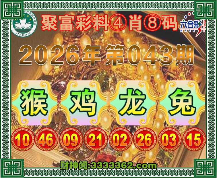 043期: 👉《聚富彩料》 👉④肖⑧码👉【猴鸡龙兔】开:00准