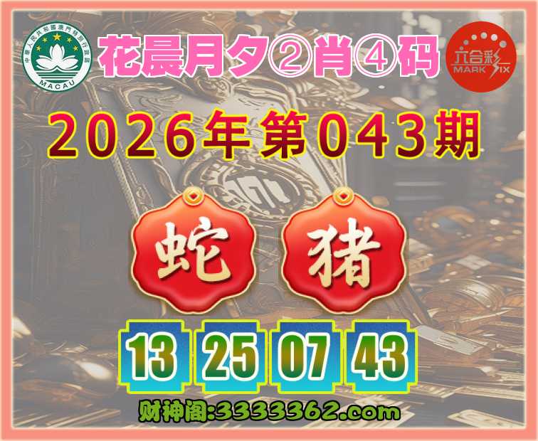 043期: 花晨月夕 🌷②肖④码🌷【猪】【13.25.07.43】开:蛇13