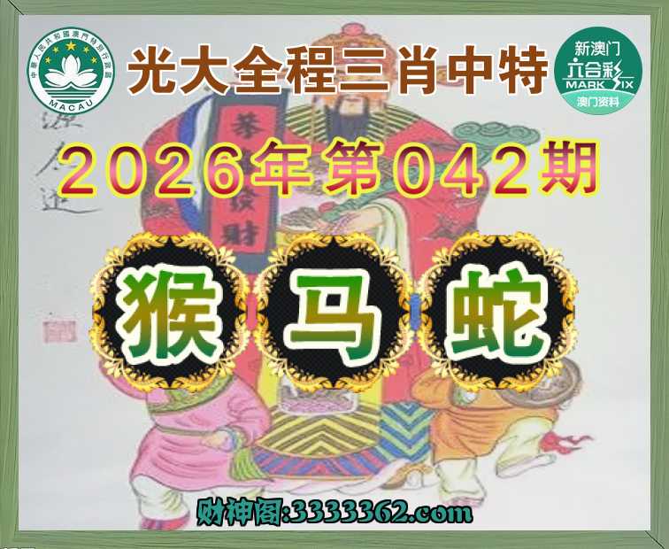 042期: 🏅『光大全程』 🏅三肖中特🏅【猴.马.蛇】开:00准